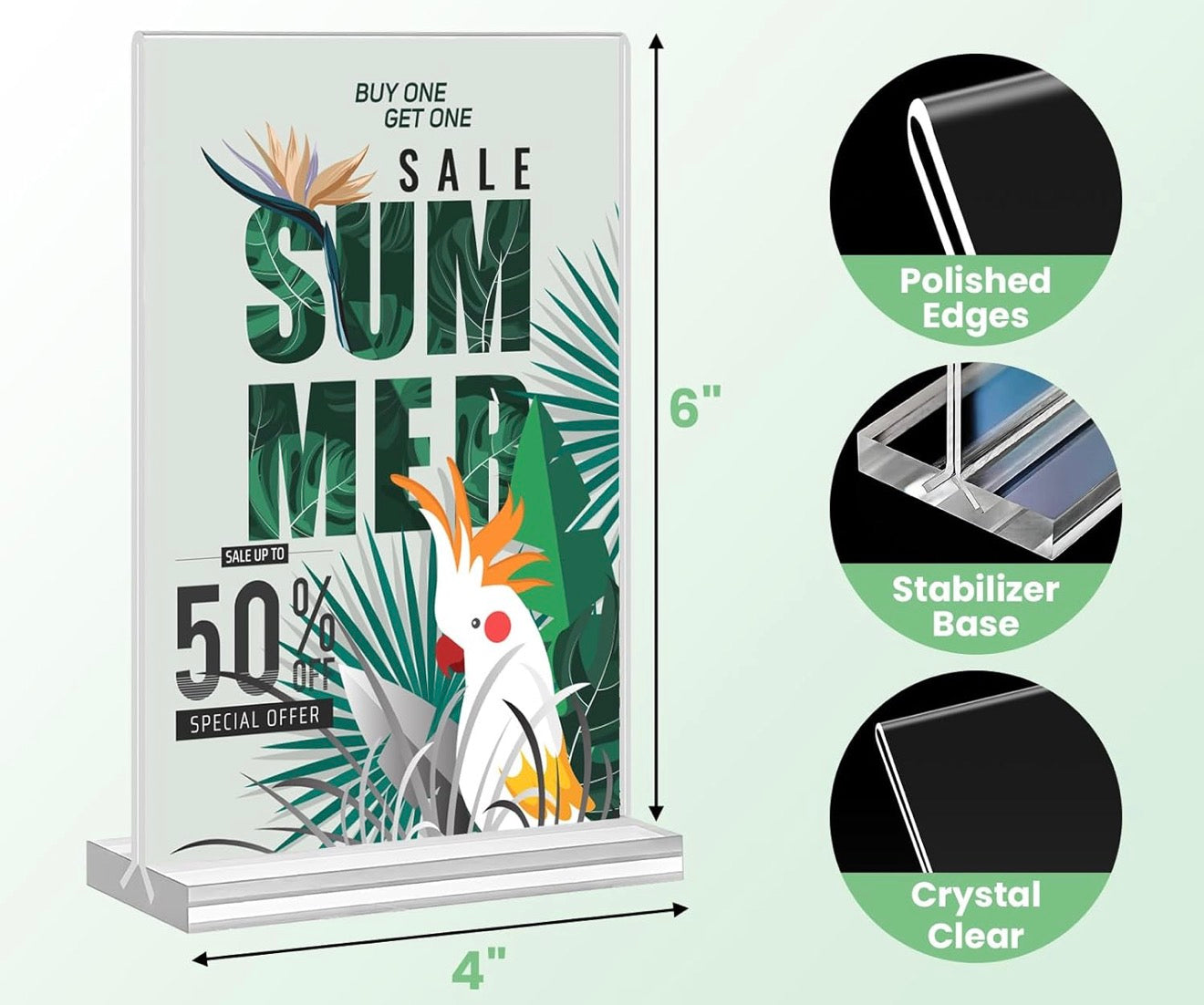 SIGN Soporte de acrílico para letreros, soporte de plástico transparente con parte trasera inclinada, doble cara, soporte de exhibición, marco acrílico para tiendas, hogares